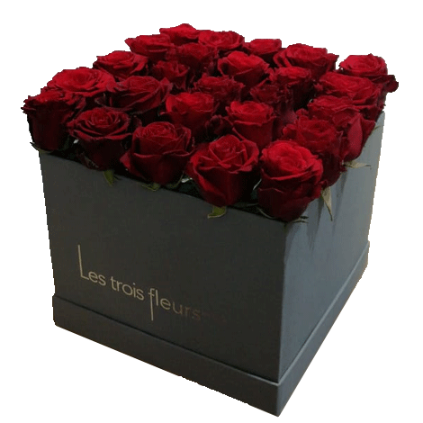 Premium red roses in a large square box. Please specify during checkout if you would like different color of roses; pink, peach, fuchsia, white, yellow or orange