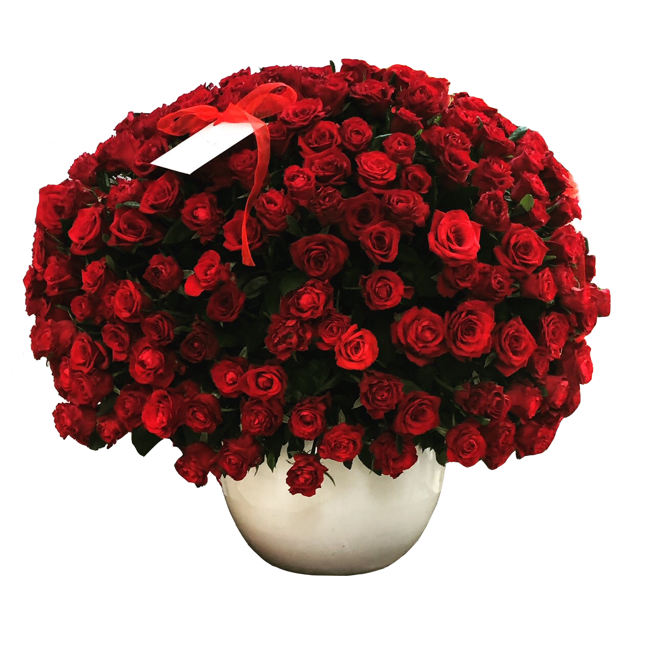 Premium red roses in a ceramic vase, dazzle your loved one with our giant red roses arrangement!