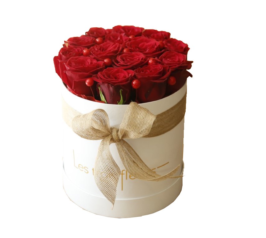 Medium sized white box with premium red roses