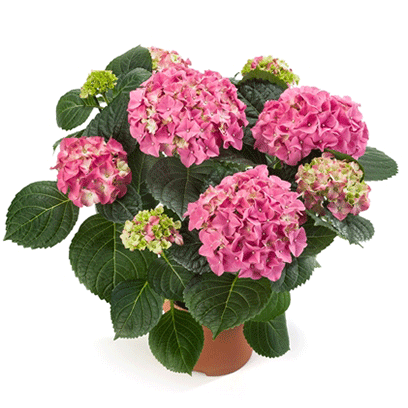 Beautiful Pink hortensia arrangement, great as an indoor plant. Comes with a decorative pot